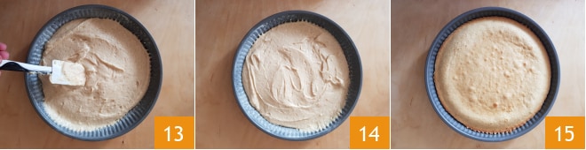 Unte e enfarinhe uma forma inteligente para torta de 28 cm e despeje a massa dentro, nivelando a superfície com uma espátula 13 14. Asse no forno estático pré-aquecido a 180° por 30 minutos na prateleira central. Uma vez assada, retire do forno 15 e deixe esfriar.