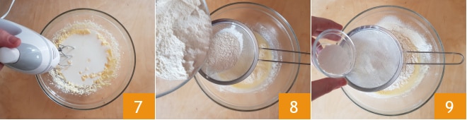 e misture tudo ainda com as batedeiras elétricas 7. Peneire dentro tanto a farinha 00 8 quanto o fermento 9.