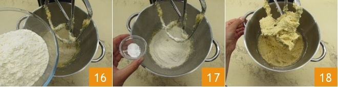 a farinha de trigo 16 e o fermento 17. Trabalhe novamente para obter um composto macio e homogêneo 18.