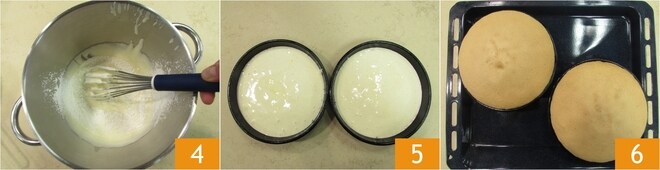 e incorpore-o delicadamente à mistura, mexendo de baixo para cima com um batedor 4. Unte e forre o fundo de duas formas de 18 cm com papel manteiga. Despeje a massa nas duas formas em igual proporção 5. Asse em forno estático pré-aquecido a 180° C por 25 minutos. Sempre faça o teste do palito, depois desenforme os dois pães de ló 6,
