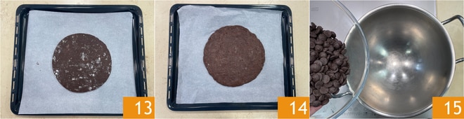 Transfira o disco para uma assadeira forrada com papel manteiga 13, asse em forno estático pré-aquecido a 165°C por 20 minutos 14. Prepare a mousse: derreta o chocolate amargo em banho-maria 15.