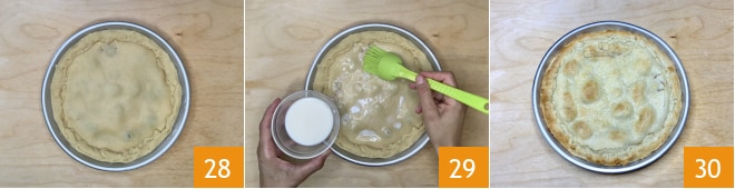 Quando terminar 28, pincele a superfície com leite 29 e asse em forno estático pré-aquecido a 170° por cerca de 50 minutos. Após o cozimento, retire do forno 30 e deixe esfriar completamente a torta pasticciotto na forma antes de desenformá-la e servi-la.