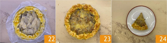 Asse em forno estático pré-aquecido a 180C por cerca de 40 minutos 22, até que a superfície fique dourada 23. Deixe descansar alguns minutos antes de cortar e servir a sua torta salgada de radicchio e batatas 24!
