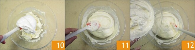 Em seguida, adicione aos poucos o merengue 10, mexendo delicadamente de baixo para cima 11. No final, adicione o creme de leite semibatido em três vezes, tomando cuidado para não desmontá-lo 12.