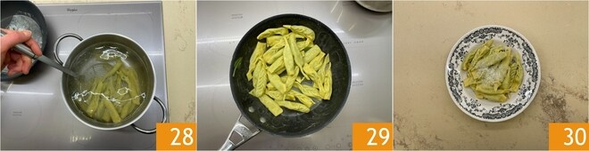 Cozinhe os tortelli por 5-6 minutos 28, depois escorra-os e salteie-os no molho de manteiga e sálvia 29. Monte o prato e sirva os tortelli piacentini com bastante Parmigiano Reggiano DOP ralado 30!