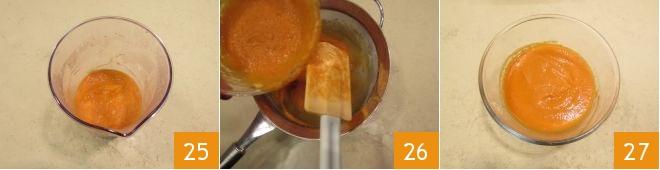 até obter um creme 25. Passe então por uma peneira 26, para obter a consistência correta, lisa e homogênea 27.
