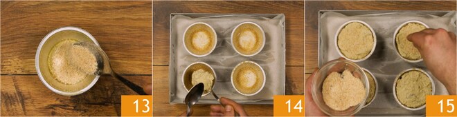 Cubra com a farinha de rosca 13, depois preencha-as com o creme de alcachofras 14 e polvilhe a superfície com farinha de rosca 15.