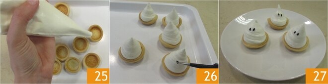 Encha cada tortinha com um pouco de mousse de Grana Padano DOP 25, depois faça os olhinhos com sementes de gergelim 26. Suas tortinhas com Grana Padano estão prontas para serem servidas 27!