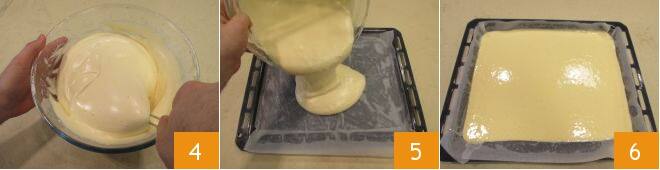 misture com uma espátula de baixo para cima para incorporar sem desmontar 4. Em seguida, despeje a massa em uma assadeira de 30x38 cm já untada e forrada com papel manteiga 5. Nivele cuidadosamente e passe para o cozimento 6: