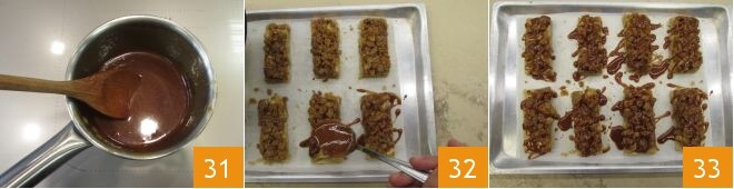 e continue mexendo para incorporá-lo à mistura 31. Neste ponto, pegue as barras e use o molho de caramelo para decorá-las 32 e sirva para um lanche delicioso 33!