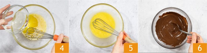 Adicione o óleo 4 e misture 5. Acrescente o chocolate derretido e mexa 6.