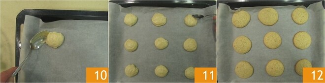 Forre uma assadeira com papel manteiga, retire uma colherada de massa 10 e use outra colher para colocá-la na assadeira, deixando alguns centímetros de distância entre um biscoito e outro 11. Asse em forno estático pré-aquecido a 180° por cerca de 15 minutos. Uma vez assados, retire do forno e deixe seus biscoitos de colher esfriarem antes de saborear 12!