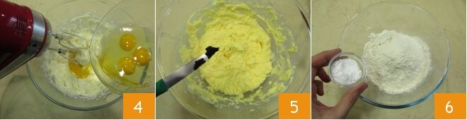 Em seguida, adicione os ovos em temperatura ambiente, um de cada vez, para incorporá-los sem problemas 4. Assim que a massa estiver espumosa e compacta, desligue as batedeiras e adicione as sementes retiradas de uma vagem de baunilha 5. Em uma tigela, misture o fermento em pó e a farinha 6
