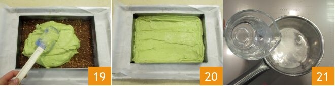 nivele com uma espátula (19-20) e coloque novamente na geladeira por pelo menos 20 minutos. Agora passe para a preparação das decorações para o seu cheesecake: despeje a gelatina em pó em uma panela, depois adicione a água 21