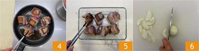 Doure em fogo alto 4, depois retire a costela da frigideira e reserve em uma assadeira 5. Descasque e fatie a cebola 6.