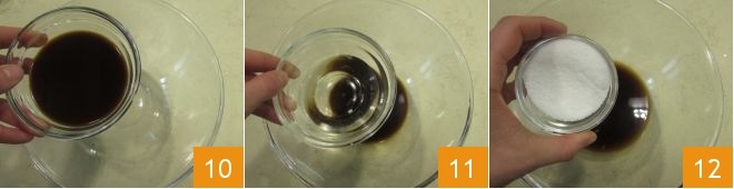 Enquanto isso, prepare o tempero: despeje em uma tigela o molho Worcestershire 10, adicione o vinagre 11, o açúcar 12,