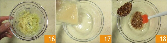 Processe até obter uma mistura homogênea 16. Neste ponto, coloque o molho de arroz em uma tigela grande 17 e adicione a pimenta seca 18.