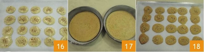 Agora você também tem os biscoitos prontos 16. As bases devem assar em forno estático pré-aquecido a 205ºC por 13 minutos; os biscoitos por apenas 6 minutos. Uma vez prontos (17-18), deixe descansar para que esfriem completamente.