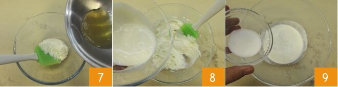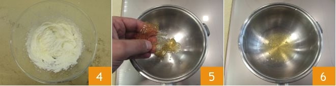 Misture tudo com uma batedeira elétrica 4. Coloque a gelatina (levemente espremida) em uma tigela colocada sobre uma panela, para derretê-la suavemente em banho-maria (5-6).